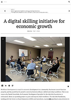 Workforce Development is crucial to economic development in a community. Businesses cannot function properly, and the possibility for growth is severely limited, without a skilled and robust workforce. This is one reason why Daniel Castañeda, the Economic Development Specialist for the Ada Jobs Foundation, is enthusiastic about an upcoming project to grow and improve Ada’s workforce. The Ada Jobs Foundation, working with the Center on Rural Innovation (CORI) and Ascendium, is poised to spearhead a new initiative to improve the digital skills of Ada’s workers.