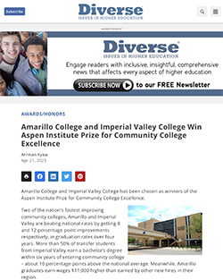 Amarillo College and Imperial Valley College Win Aspen Institute Prize for Community College Excellence