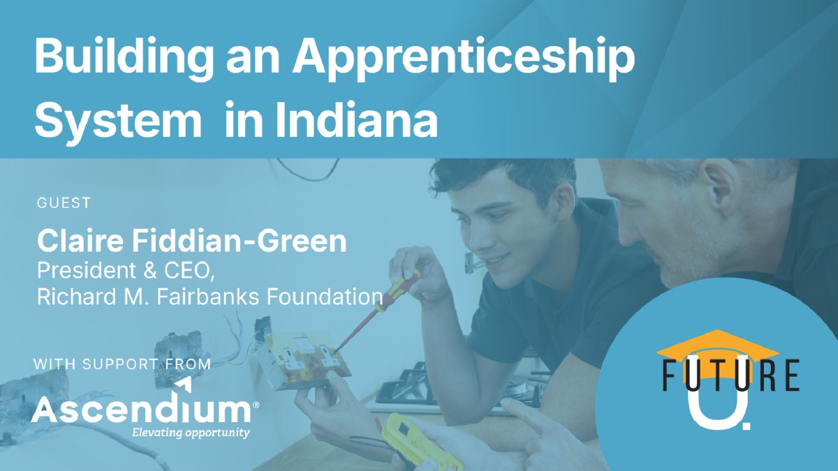 In the final episode of a two-part series on apprenticeship degrees, the Future U. podcast’s Jeff Selingo and Michael Horn discuss Indiana’s adaptation of the Swiss apprenticeship model covered in the first episode. Claire Fiddian-Green, President and CEO of the Richard M. Fairbanks Foundation, joins the hosts to explore how the state is creating scalable pathways to achieve the Swiss model’s characteristic permeability between academic and vocational tracks. As Indiana implements new high school graduation requirements to give learners more flexible, direct pathways to local industry, the episode considers the challenges and opportunities of building an apprenticeship system at scale.