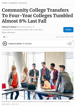 Community College Transfers to Four-Year Colleges Tumbled Almost 8% Last Fall