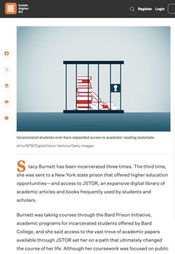 Stacy Burnett has been incarcerated three times. The third time, she was sent to a New York state prison that offered higher education opportunities—and access to JSTOR, an expansive digital library of academic articles and books frequently used by students and scholars.